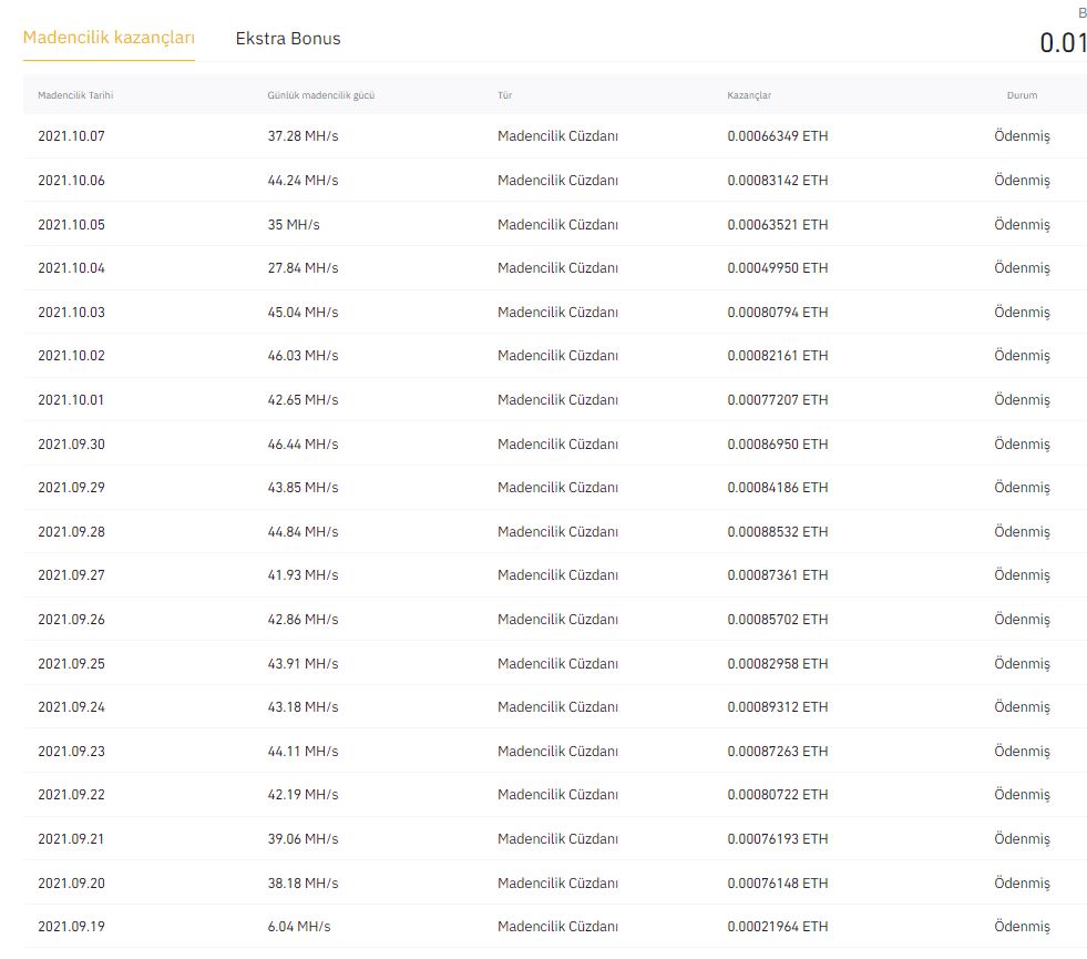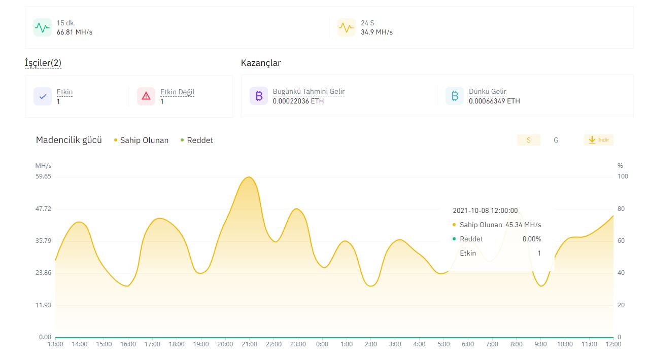 Binance Pool'da ödemelerde sorun yaşıyorum 3-4 gündür. Mh ortalaması düşmüş ve kazancıma yansıyor bu. 26-28 MH/s ortalamalarına düşmüş. Normalde 40MH/s üzeri ortalamayla kazım yapıyordum. Başka miner programını deneyeyim dedim ve 1 günlük kazançta yine eski değerlere ulaştım ancak tekrar aynı problemi yaşamaya başladım. Bu durum iyice canımı sıktı, her şey saat gibi tıkır tıkır işliyordu niye böyle oldu anlamadım. Konuyla ilgili net bilgisi olan varsa, aydınlatırsa sevinirim. Durumu anlamanız için birkaç resim de ekleyeceğim aşağıya.