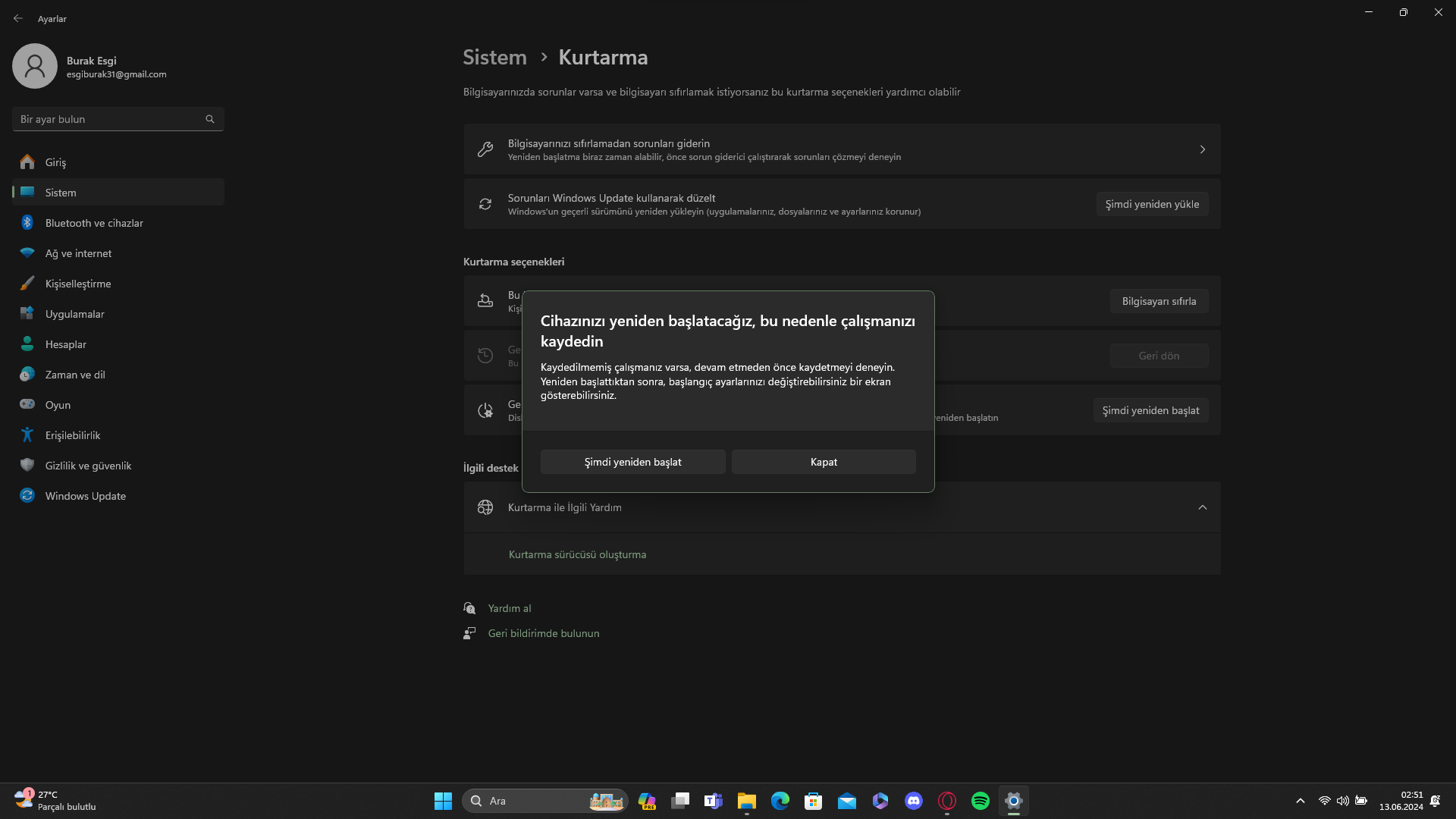 hala siyah ekran hocam kapatma düğmesine basılı tutup açayim mi