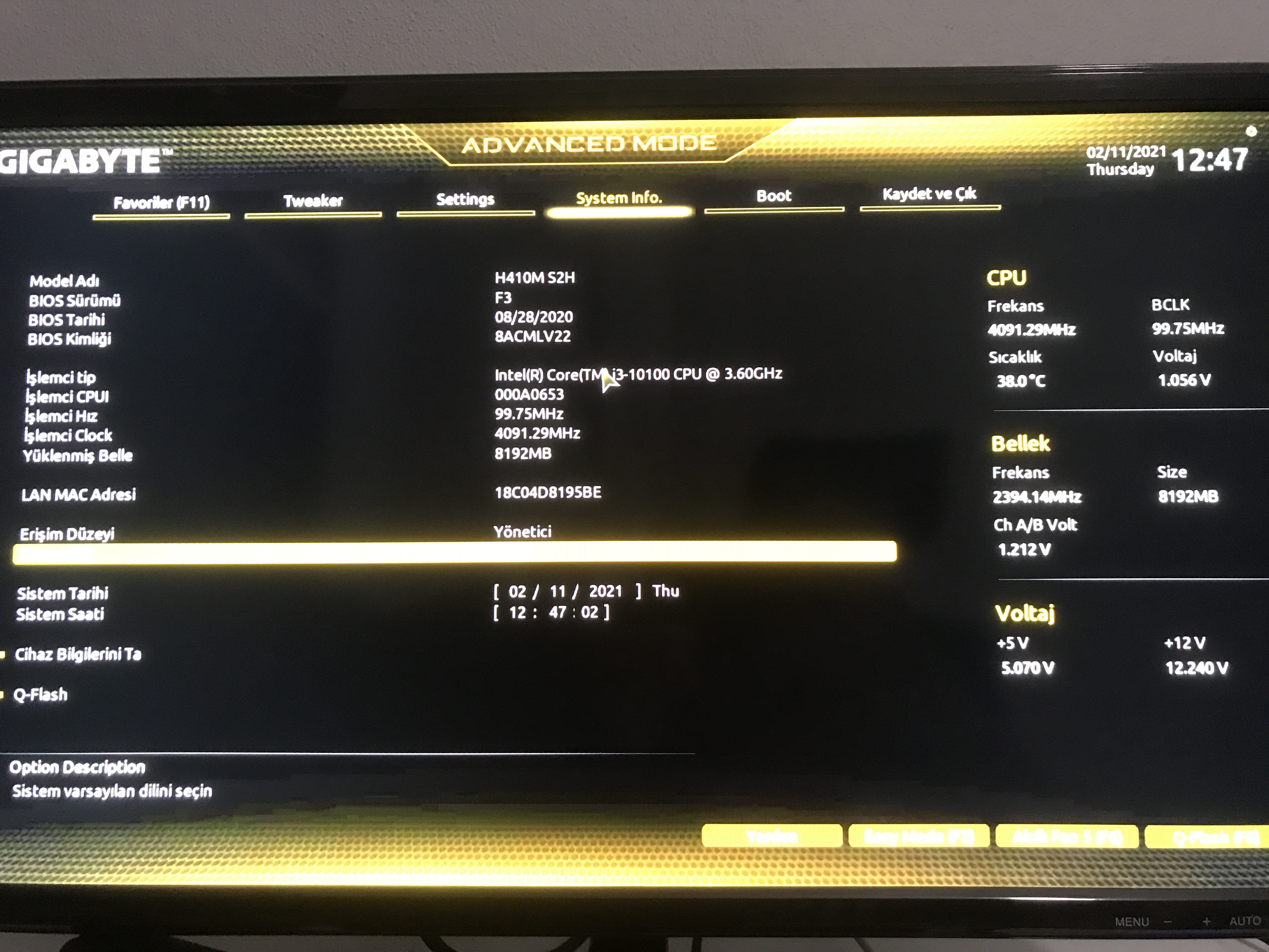 H410 m s2h aldım ve işlemci 10100 aldım ve ddr4 ram aldım fakat bios ekranından çıkamıyorum hdd de windows 10 yüklü