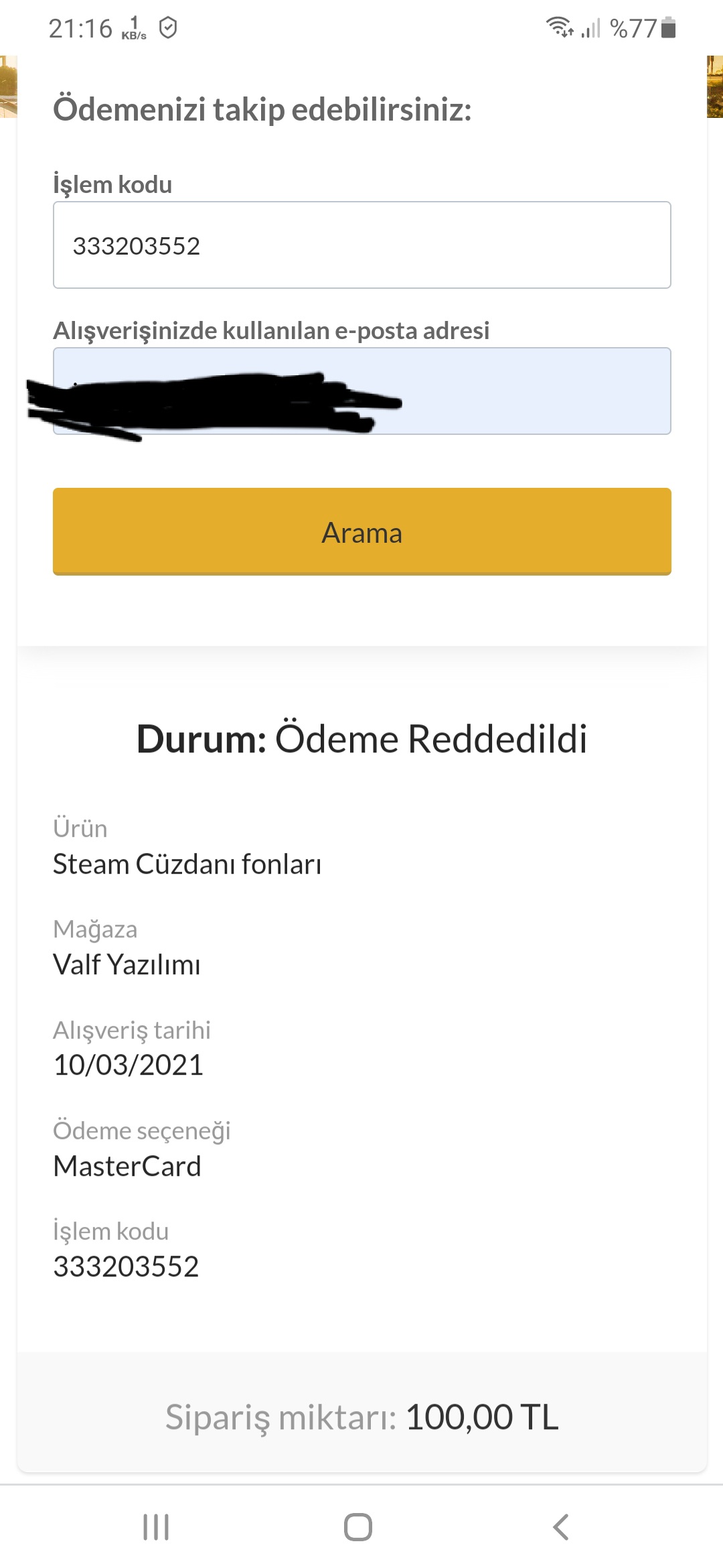 Ödeme reddedildi yazıyor. Şimdi rahatladım.