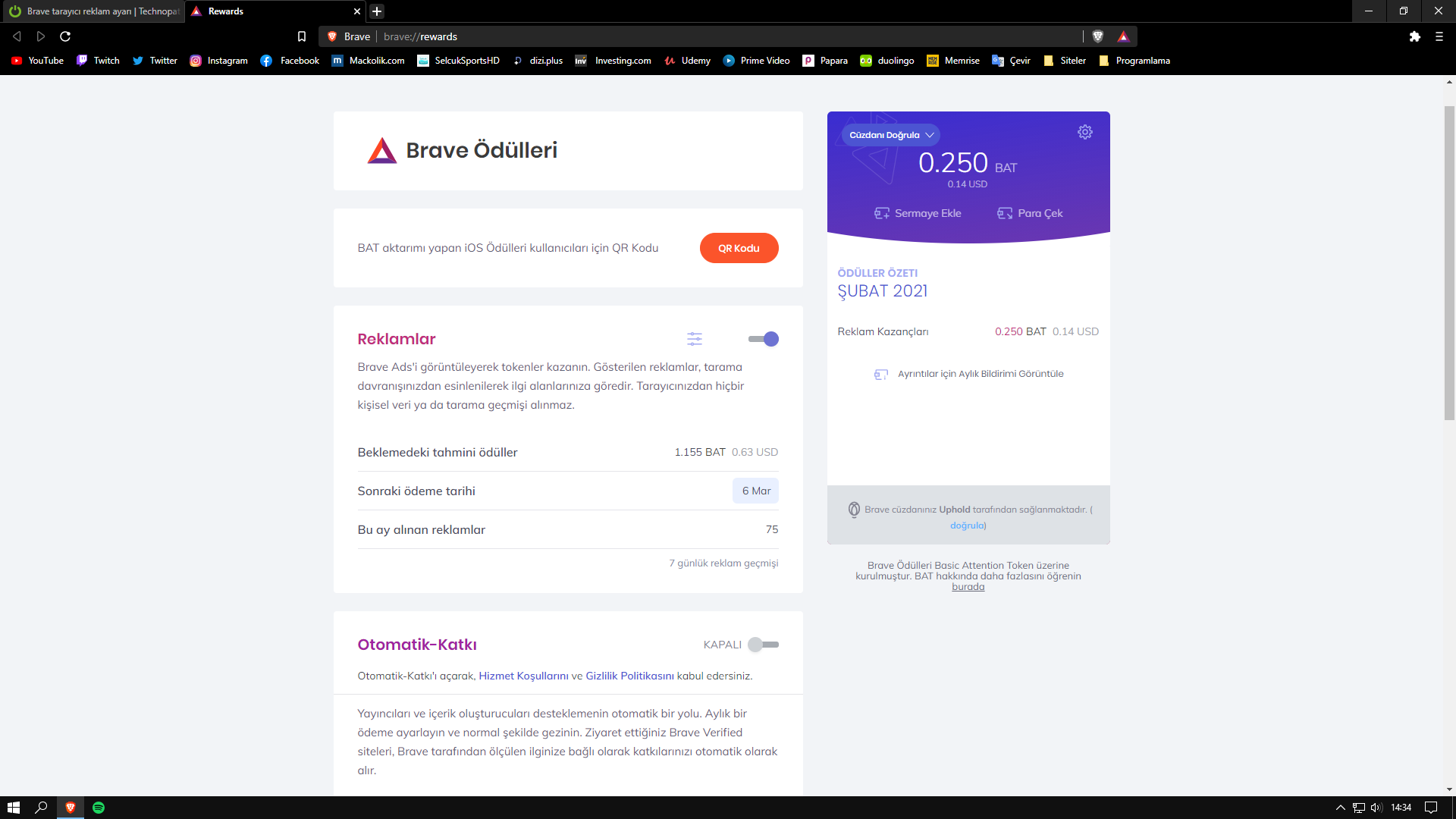 Bu bravede kac bat olunca ne kadar para veriyor. Ben de kullanıyorum ama parası iyi ise açarım reklam göstermeyiBrave reklamları gelmiyor. 1150 Bat'ta kaldı 2 gündür sabit ne yapmam lazım?