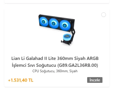 alttakine işlemci ve anakart ekleyince o fiyata çıkıyorhayır hocam alttaki her şey eklenmiş hali