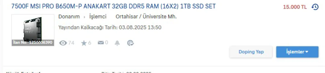 Ryzen 5 7500f tray garanti fatura tam 18.02.2024
