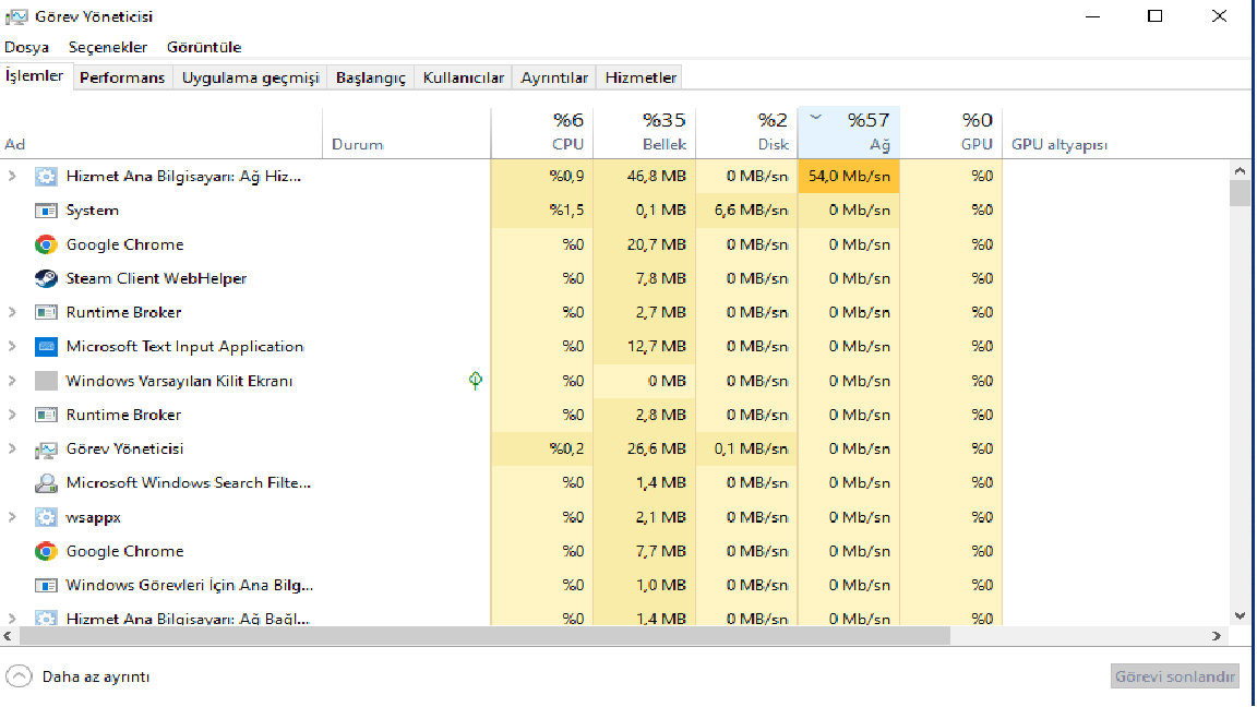 Hizmetler de pek çok şey var çalışıyor yazan nasıl anlayacağım hangisi olduğunu.Arka planda bir şeyler yapıyor ya da bug a girmiş olabilir. Hizmetler den onu bul yeniden başlat.