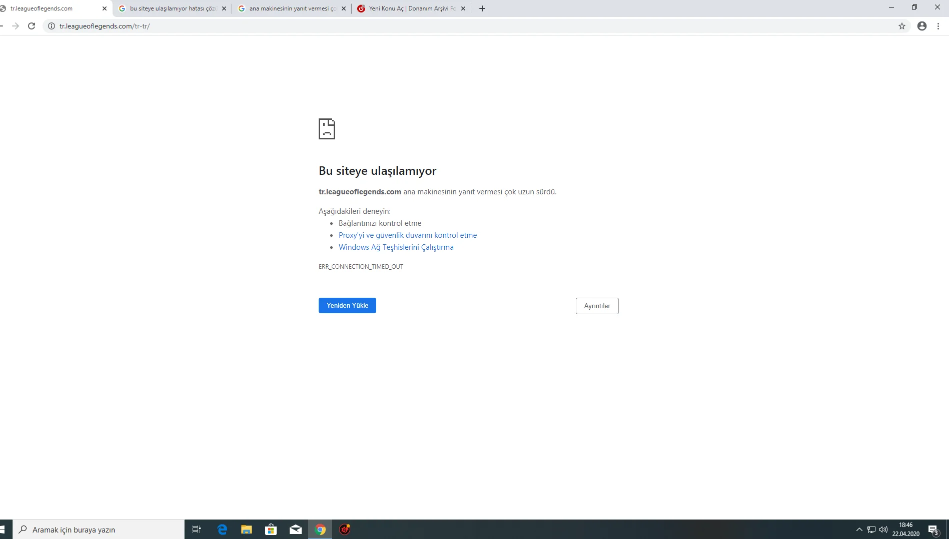 Merhaba arkadaşlar bir anda internet sitelerinin %90 nında bu hatayı almaya başladım örneğin lol sitesine bile girmiyor DNs DEğiştirmeyi denedim hatta ip elle girdim proxy dediği şeyi otomatik yaptım net için Complete Internet Repair programı varmış oda çağre yapmadı ne yapılabilir artık bilgim tükendi sizlerden yardım istedim şimdiden çok teşekkürler.