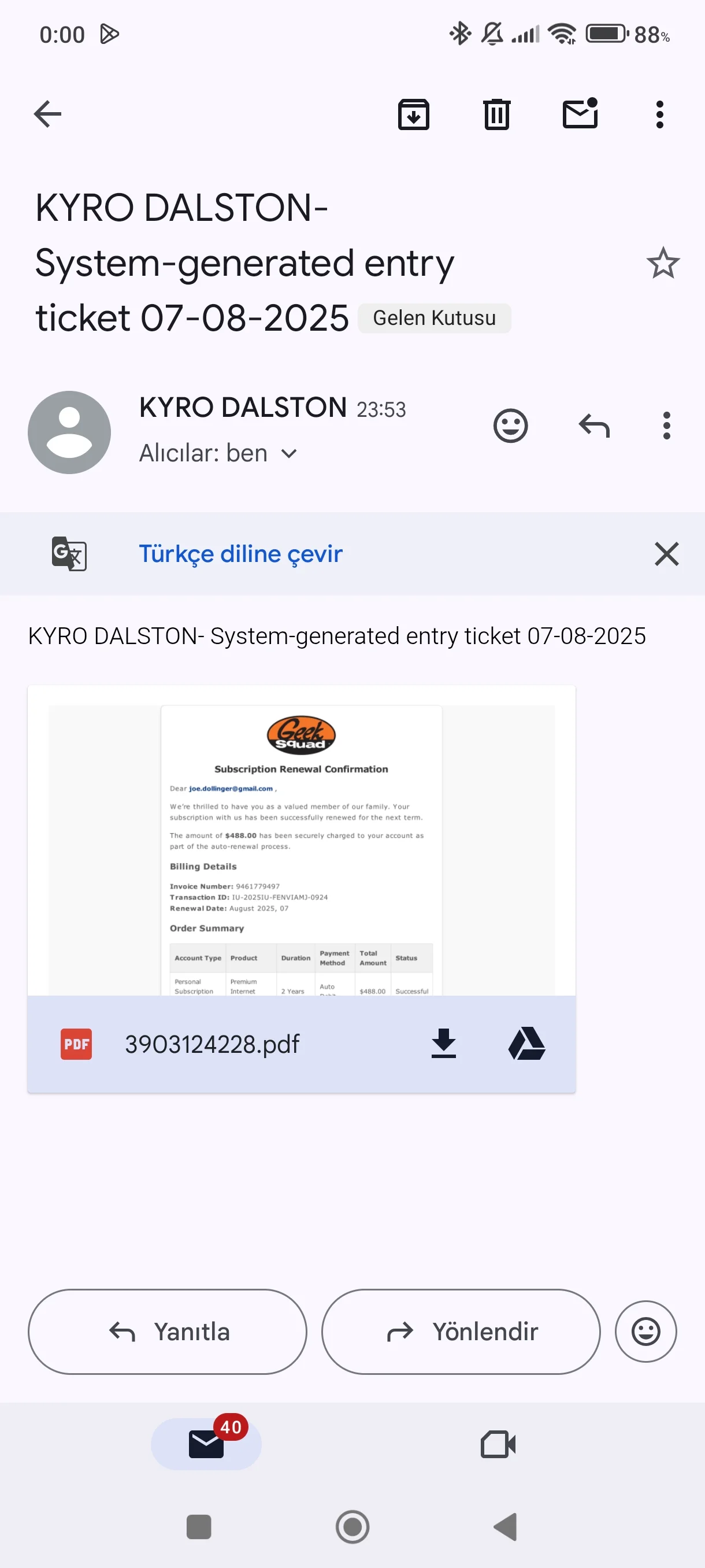 Kripto işlem yaptım yakın meblağlarda.488 dolarlık bir alışveriş yapmamışsınızdır maili silin