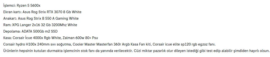 o zaman bilemedim 3070 ti olsa kabul edilebilir olurdu da düz 3070 li bir sisteme 28k sırf beyaz diye mümkün değil vermem.ekran kartı hariç 20kya da ddr5 dizebiliyorum aslında ama beni cezbeden şey beyaz olması oldu her şeyin