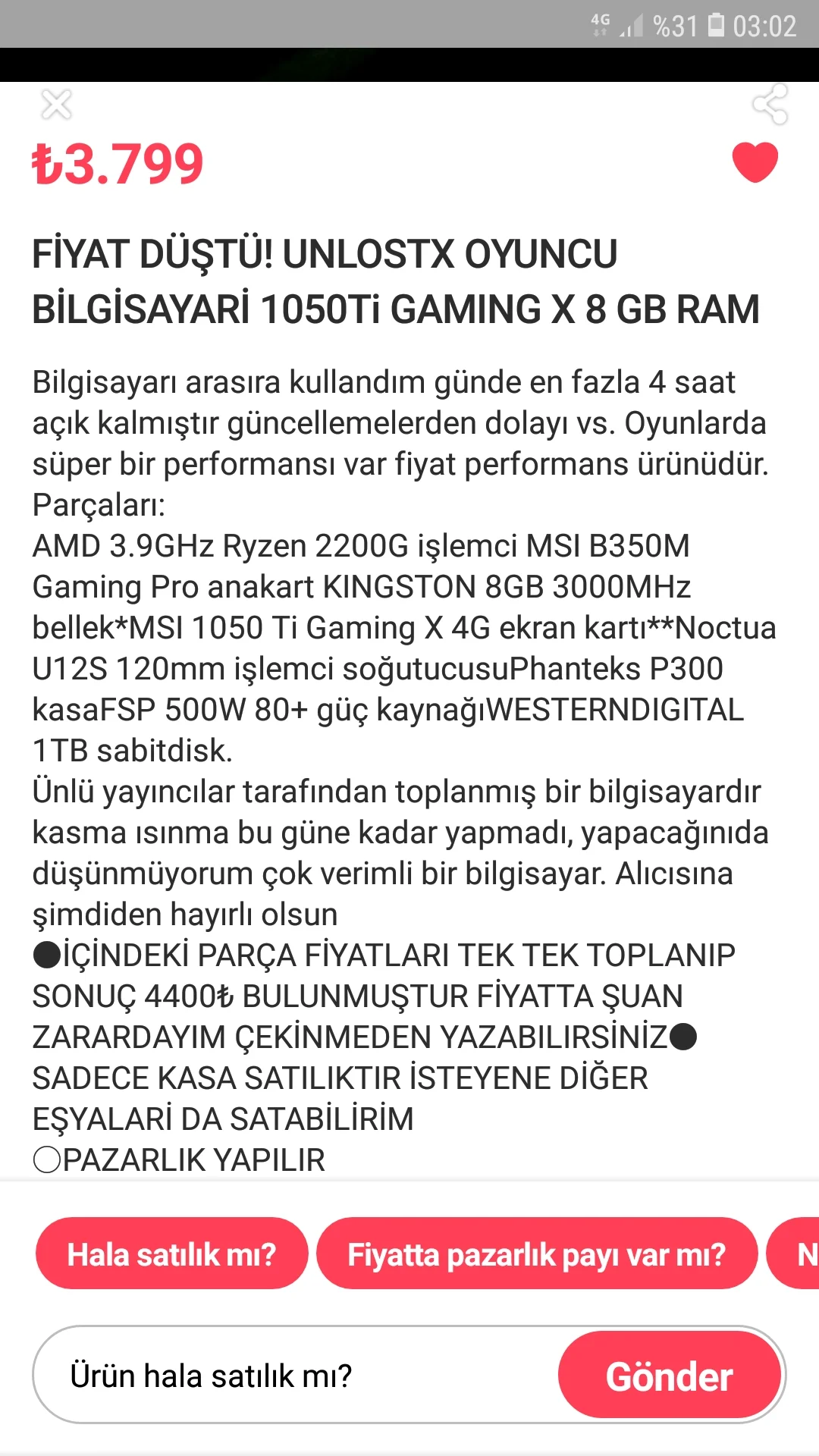 o fiyatlara sıfır ve 1050Ti dan ve o işlemciden kat kat daha iyi hazır sistemler var