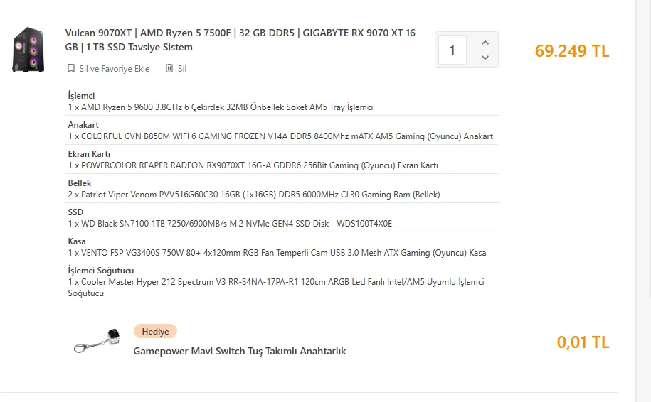 Arkadaşlar selamlar herkese iyi forumlar yaklaşık 1-2 hafta önce 4060ti sistemimi sattım ve şimdi yükseltmek istiyorum bu sistem bana güzel geldi ve birazda özelleştirdim 60.000 küsür civarına denk geliyor sizce daha iyi tercih var mıdır