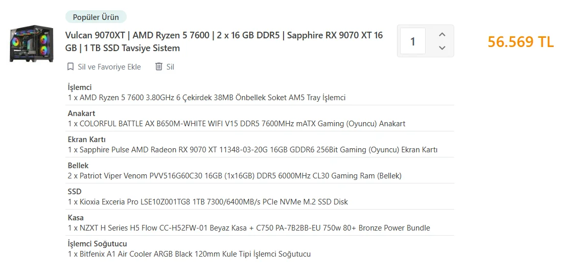 AMD RYZEN 7600-GIGABYTE Radeon RX 9070 XT GAMING OC 16GB-A620M S2H-1TB-16GB Uygun Fiyatları ile Tebilonda