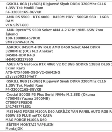 Ryzen 5 5500 ün yerine ryzen 5 5600 varmış 2 yıl garantisi mevcutmuş birde.Diğer donanımların 1 sene garantisi varmış bu sistemin ederi ne kadar. 30 bin TL istiyor kasadan pahalı mı ucuzmu ona göre alacağım