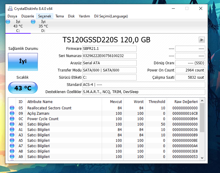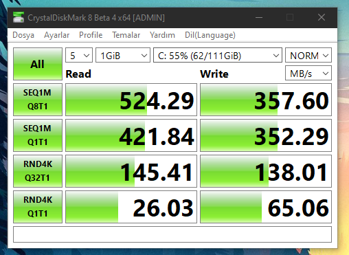 Anladim önemli bilgi yok zaten şuan crystaldiskmark yaptim sonuç normal çikti herşeyi kapattiğim için