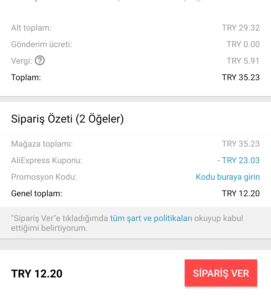 Kuponumla sepette vergiyle beraber 11tl falan yapıyor