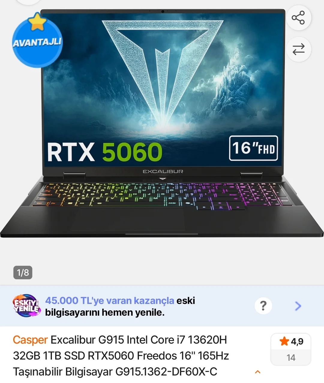 vada yazmış: Teknik sorun kısmına açmışsın konuyu. 13450hx 5060 loq var 47ye o varken bu alınmaz. Devamı için tıklayın... Log bevada almam
