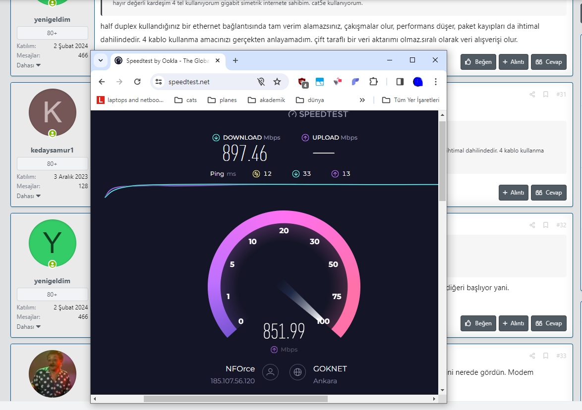 1000 Mbps pakete sahibim CAT7 kablo kullanıyorum 990 Dw 950 Upload alıyorum mesela Cat5E kablo ilede aynı hızları alıyordum değişen pek bir şey olmadı. Olay bence kablonda değil.
