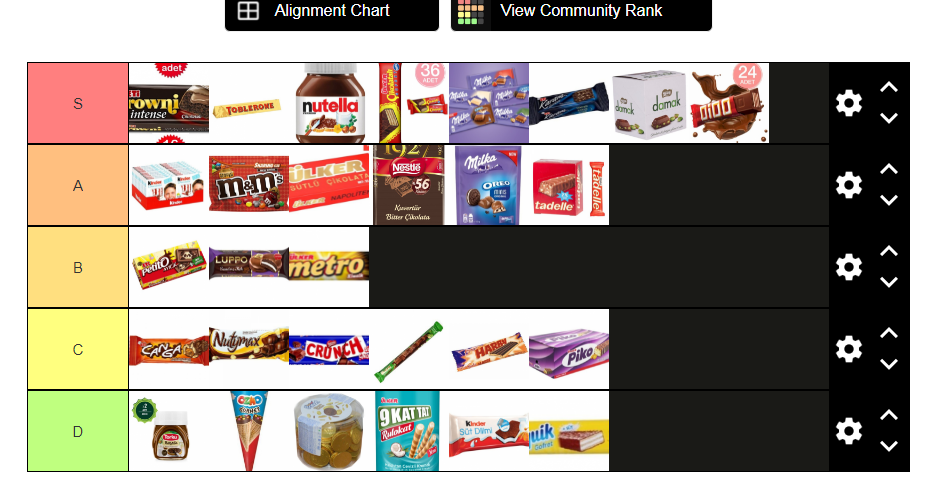 Chocolate Tierlist/Sıralama