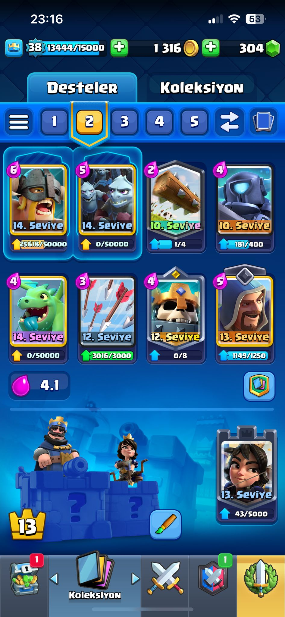 tek yüksek destem bu pekka destesi sayılabilir bu arada diğerlerini yükseltmem gerekecek makslayamayabilirim
