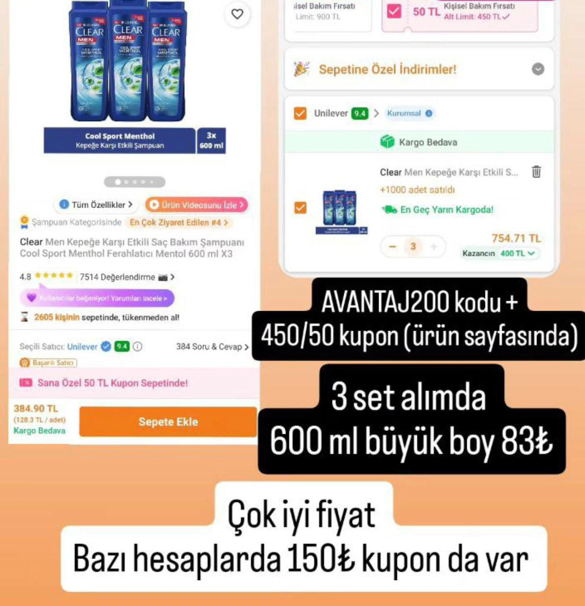 3 set alımda ürün sayfasındaki 450/50 kupon + BEKLENEN200 Koduyla