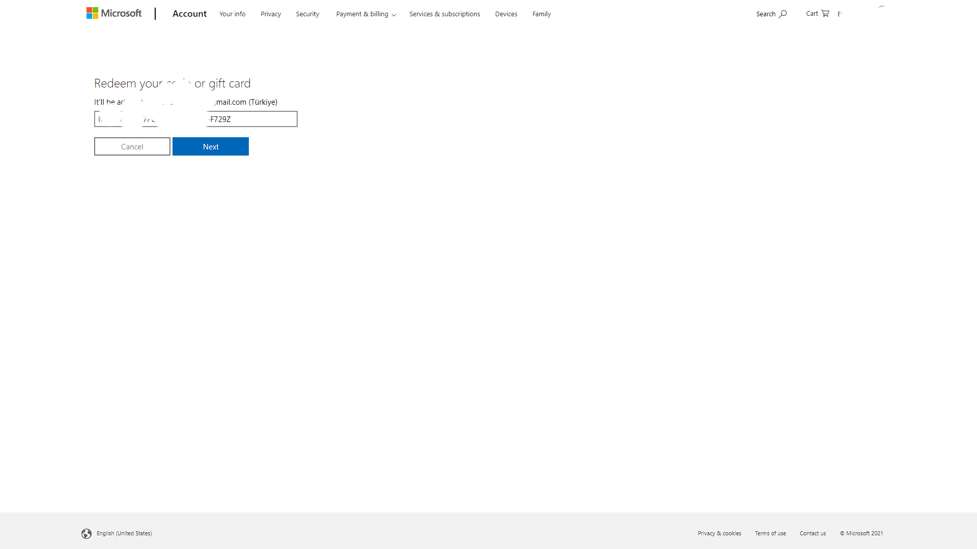 Girdikten sonra size 2 seçim hakkı sunuyor, 1 gb internet veya 1 aylık xbox pc game pass. Ben gamepass seçtim. Ardından çıkan redeem kodunu kopyalıyoruz ve redeem.microsoft.com adresine gidip redeem kodumuzu yazıyoruz.