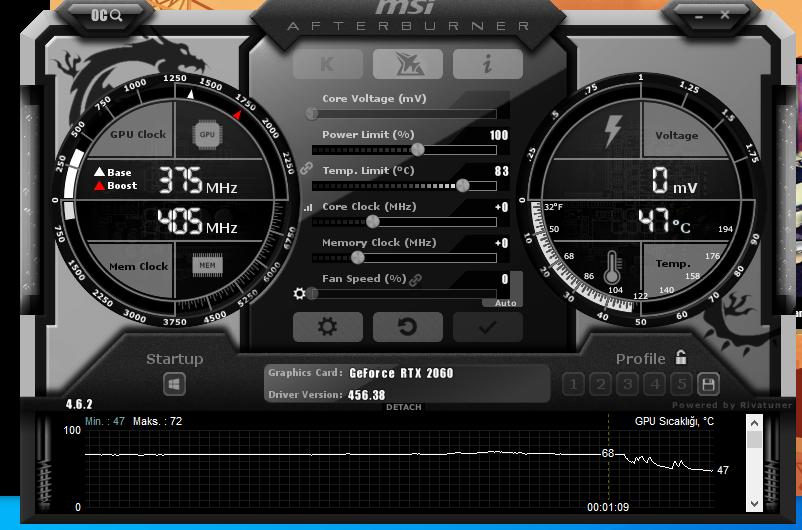 Msi afterburner ile test yap sonra da bize ss at, 1 saat oyun oyna