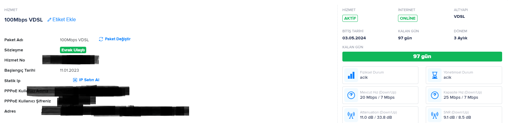 Hat zayıflama yüksek, snr sınırda. Mak. hız değil mevcut hız önemli. Mevcut hız değişince mak. hızda değişir. Güldürennet altyapı sorguda kaç çıkıyor.