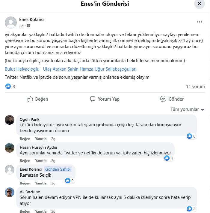 Keklik avına çıkmışlar. Zorttizort ip verirseniz millete tabi donma sorunları yaşarlar. Zaten daha önce yayın platformları cortlamıştı. Şimdi ana bein yayınlarında bile insanlar sorun yaşıyor.