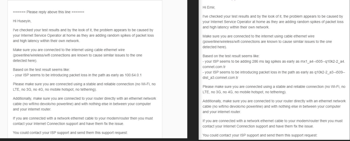 - Firmaya geçerken bu sorunu görmüştüm ve ona rağmen deneme şansı verdim ve bir süre sonra benzer problemler bende de olmaya başladı fakat diğer ISP'lerde böyle bir sorun yoktu. Firmaya ilk talebimde kendilerinden kaynaklı bir sorun olmadığı iletildi ve altyapıma suç atıldı, hiçbir ISP'de bu şekilde bir sorun yaşamamıştım oysaki. Öyle topu kendinden kolayca atamazsınız dedim ve test kayıtlarını oyuna sunucu sağlayan firmaya ilettim (Hiperz'e) yani incelemeleri sonrası ISP kaynaklı sorun yaşadığımı gördüler, bu sorunu ben değil diğer başka kullanıcılarda ilettiğinde aynı sorunun ISP kaynaklı olduğu iletildi. Fakat firma hiçbir şekilde o berbat sunucularından kaynaklı olduğunu kabul etmedi. Zaten MTR kayıtlarında da, azıcık okumabilen sorunun kimden olduğunu anlardı.Alıntıyı görüntüle