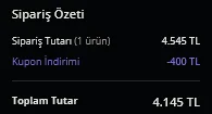 Sana özel 400 TL kupon hesabınızda mevcutsa 4.199 TL'ye düşüyor.