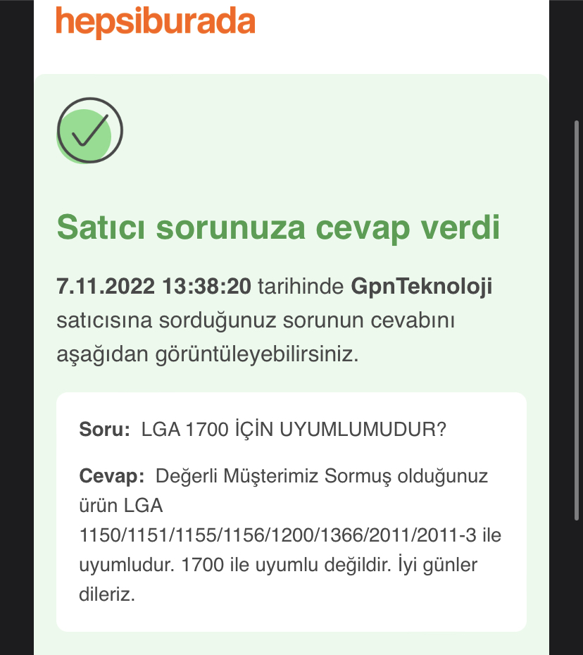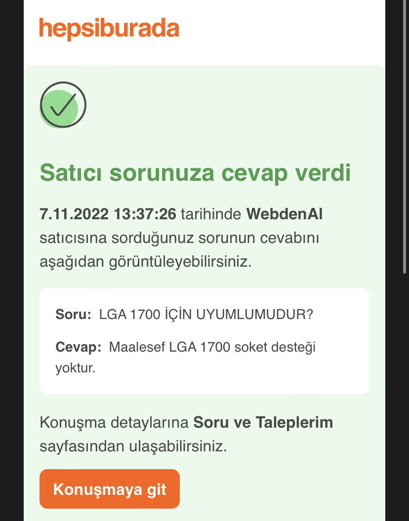 Çok teşekkürler, sanırım 1700 kit bulmam lazım ya da başka sıvı soğutmalara yöneleceğim.Ben Sordum İki Satıcıya Değil Dediler Ama