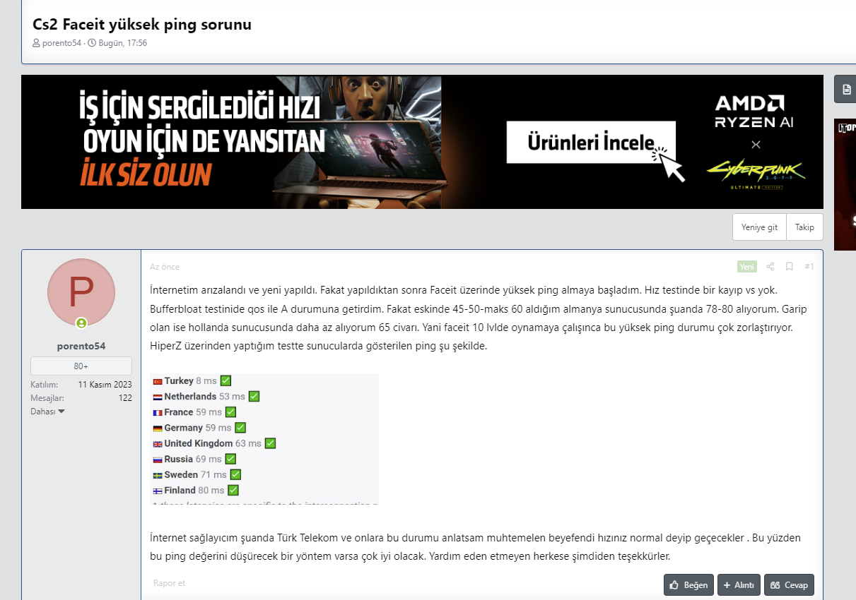 Normalde 33 ping ile oynuyordum. Sonra 40-50 altına düşmemeye başladı. 60-70 ping ile ışınlanıyordum arkadaşlarım inanmıyor bunun sebebini de merak ediyorum. Kayıt açtım gösterdim anca inandılar. Bugün 70 ping civarı oynarken 200e fırlamalar olmaya başladı, ardından 45 civarına düştü ama bu kez arada 1600 PİNG almaya başladım. Arada dediğim çok az değil yani 20-30 saniyede bir oluyor, ayrıca bir süre devam ediyor. Aşırı sık ve uzun süreli olmaya başladı nasıl çözebilirim?