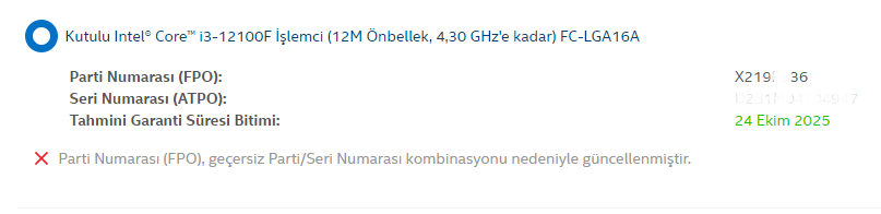 Satın aldığım sistem bugün geldi ve garanti bitiş tarihlerinde bir tutarsızlık var. Sizce bu normal mi ? Teşhir veya iade ürün gönderdiklerini düşünüyorum. Ayrıca arkadaşın dediği gibi faturada ekran kartını düşük göstermişler, diğer parçaları şişirmişler.