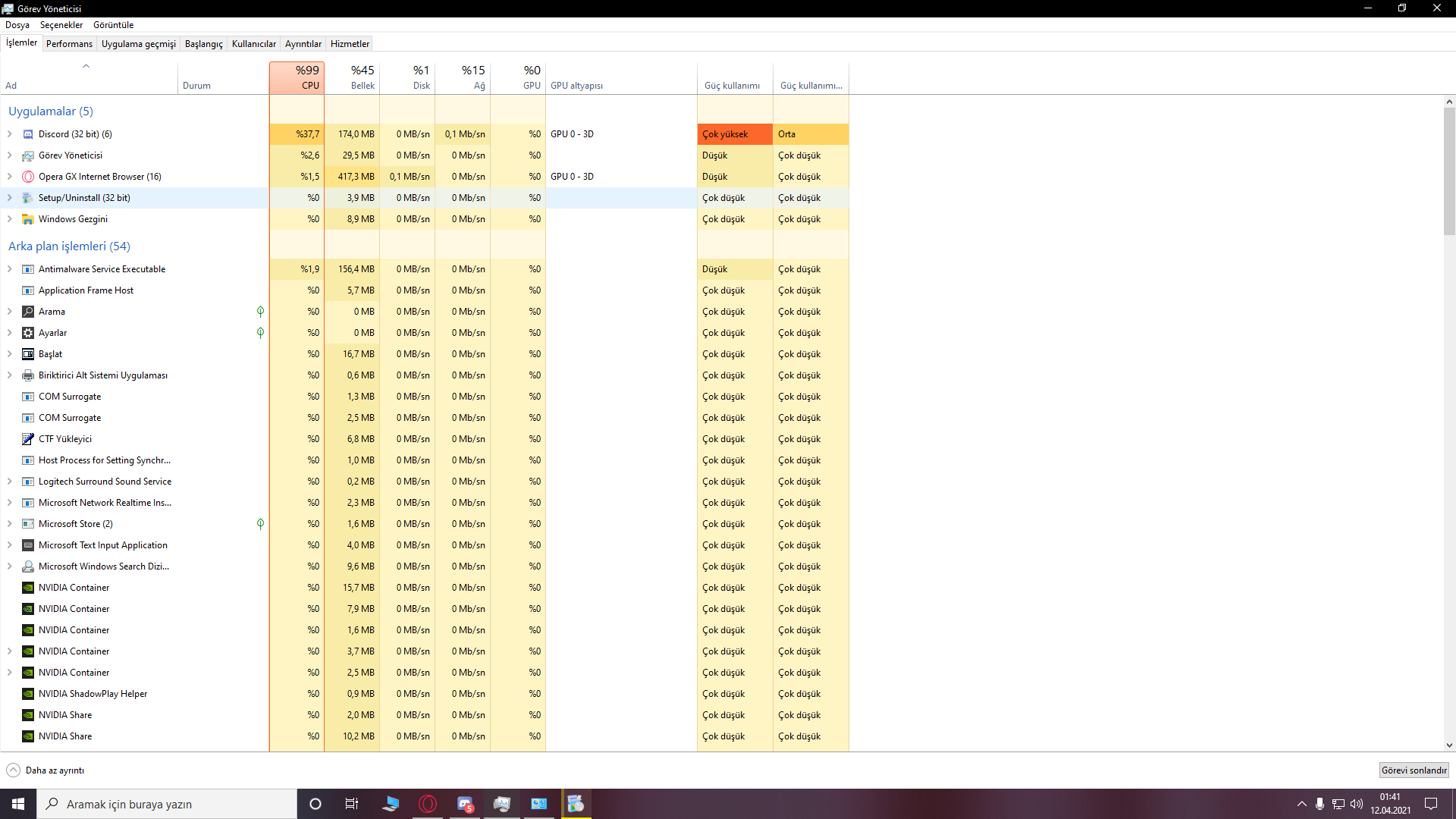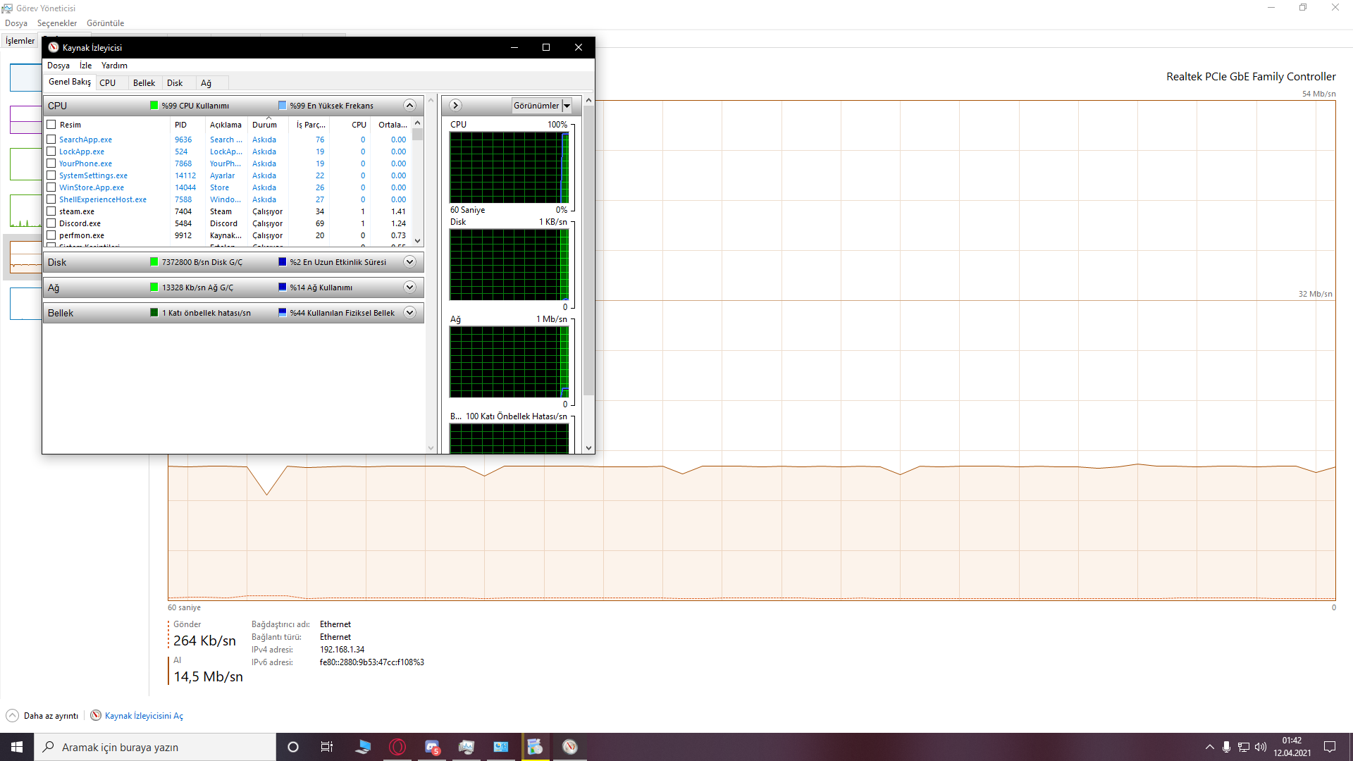 discord açık arkada arkadaşla çözmeye çalışıyorum sadece discord bile %34 kullanıyo