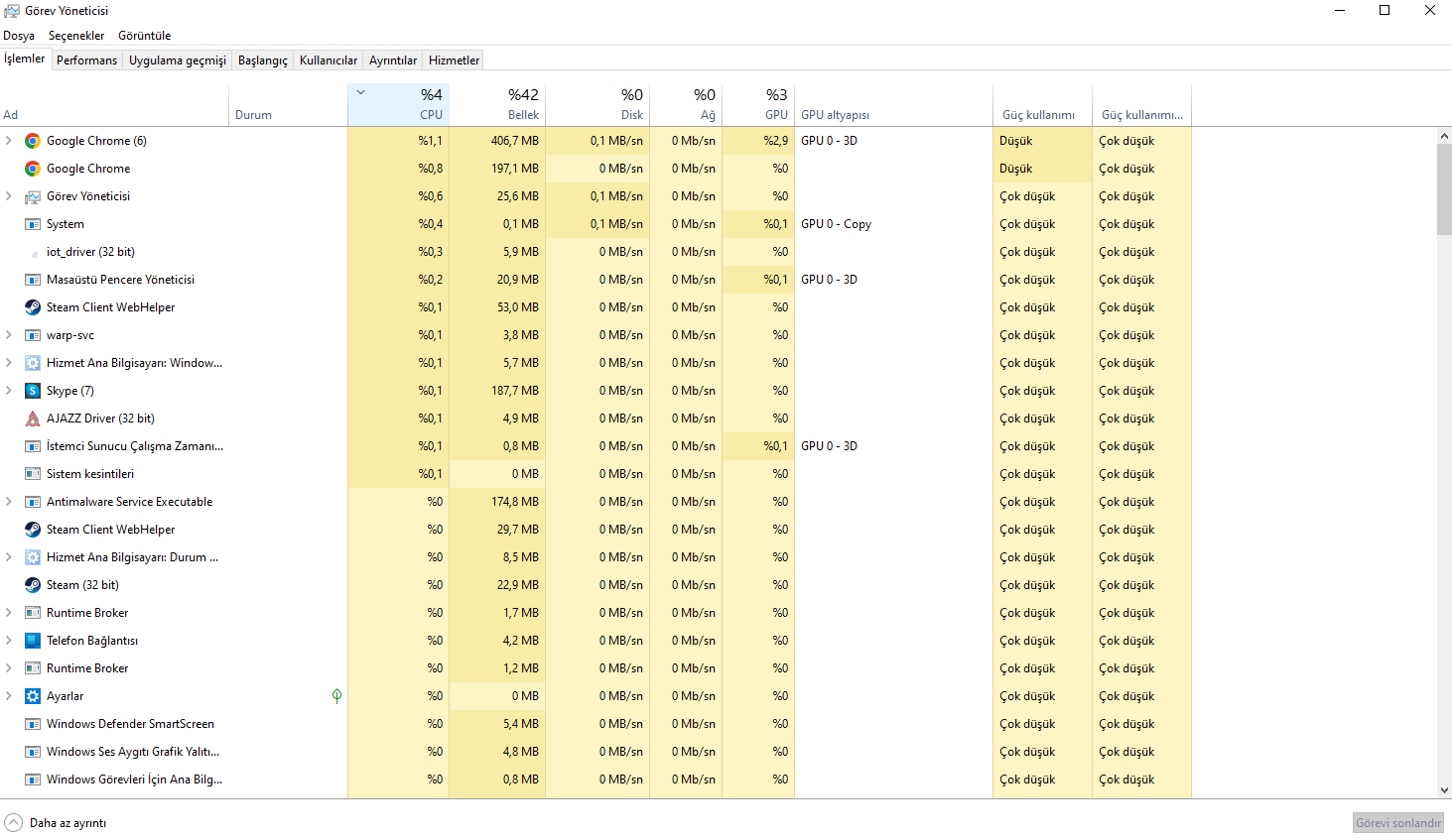 yukarıda %88 cpu yazıyor oraya tıklarsan en çok kullanan en üstten alta sıralanacak o şekilde tekrar atar mısınMesajlar otomatik olarak birleştirildi: