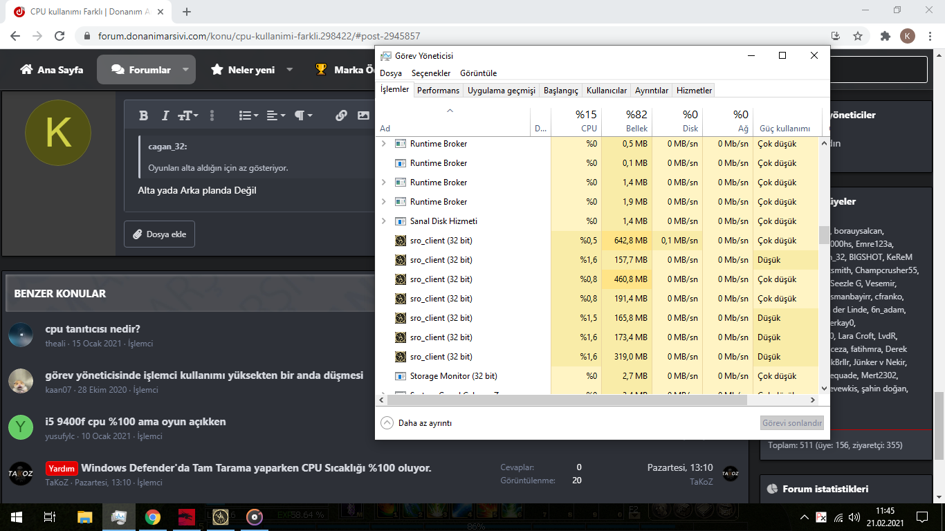 8 Tane Oyun ve 8 Tane oyun botu açık halde suanarkada açık olan uygulamalar varken %3 çok düşük bir kullanım aslında görev yöneticisi daha doğru olabilir.