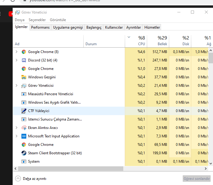 arkadaşlar Pc yi yeni aldığımda %2-3 cpu kullanımı varken şimdi ise sadece google açıkken bide discord %26 sizce neden böyle virüs gibi bişey olabilir mi ? şuan 10 gözüküyor ama bazen 26 30 a çıkıp 6 7 dakika kalıyor öyle sizce ?