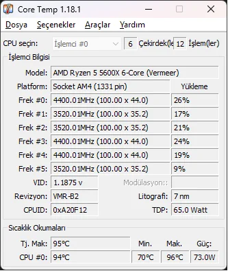 Stok mu kallnıyorsun ? 100 derecede su buhar oluyor hocam sizinki 96 derece normal değil tabii ki.Bilgisayarı açtığımda cpu derecem yüksek uyarısı veriyor. hava durumu 28 derece görünüyor. bu cpu derecesi normalmi yoksa bana sıkıntı olur mu?