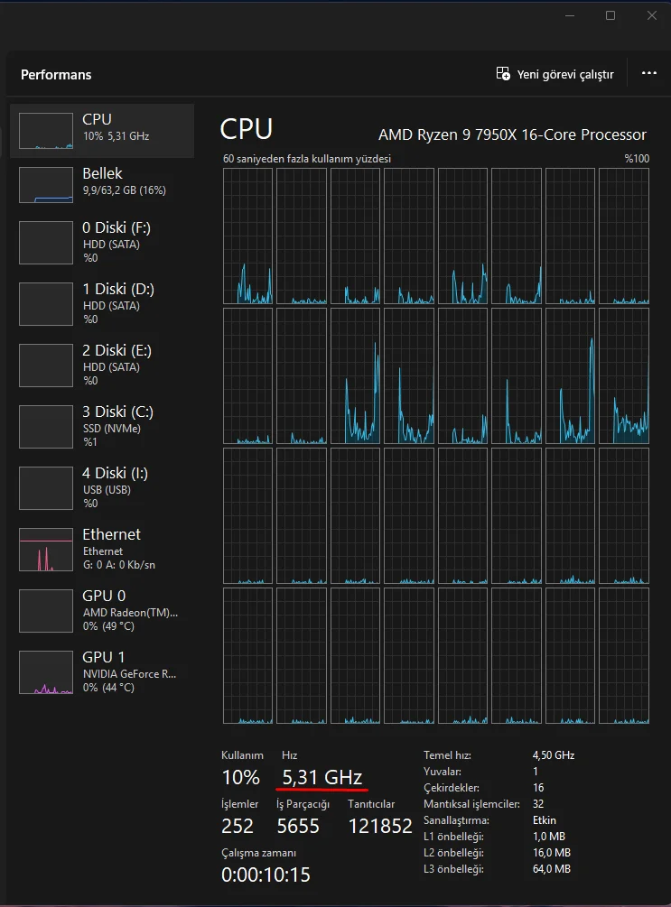 Herkese merhaba, AMD 7950x işlemci Core Performance Boost. (CPB) açıkken sistem boşta 59°-60° civarında geziyor. Herhangi bir uygulama program vs açtığımda anlın 75°-80° fırlayıp tekrar 60° derece seviyelerine geliyor. Fan sesi rahatsız ettiği için Q-Fan ayarlarını yaptığım ve TDP ayarlarını 120W yaptığım halde ısı probleminden kurtulamadım. Core Performance Boost. (CPB) kapalıyken ısı 45°-46° derecelerde seyrediyor fakat CPU GHz 4.5'e sabitleniyor. CO -30 da yine aynı sonuç çıkıyor.
