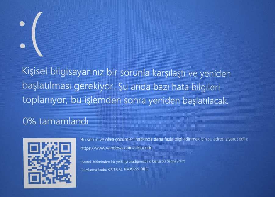 Geçtiğimiz ay harddiskim bozuldu. Bilgisayar sürekli çöküyordu dosyalar açılmıyordu. Yenisiyle değiştirdiler. 2 3 hafta kullanmadım. Sonrasında format attım 3 4 gün önce. Ama o günden beri bilgisayarın açılmasından 1 2 dk sonrasında critical process died hatası alıyorum. Yeniden başlatılacak diyor ama başlamıyor siyah ekranda kalıyorum. Sıfırlamaya çalıştım birkaç kez bilgisayarı. Kurulum sırasında çöktü hep. Bilgisayarcıya format attırdım. Kurduktan sonra ilk 2 3 saat sorun yok sonrasında yeniden başladı. Ara tara çözemedim sorunun kaynağını. Bunu yaşayan veya çözümünü bilen var mıdır. Parçalarda mı sorun var yoksa yazılımsal mıdır?