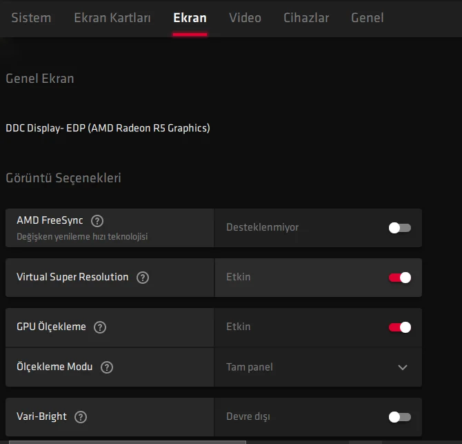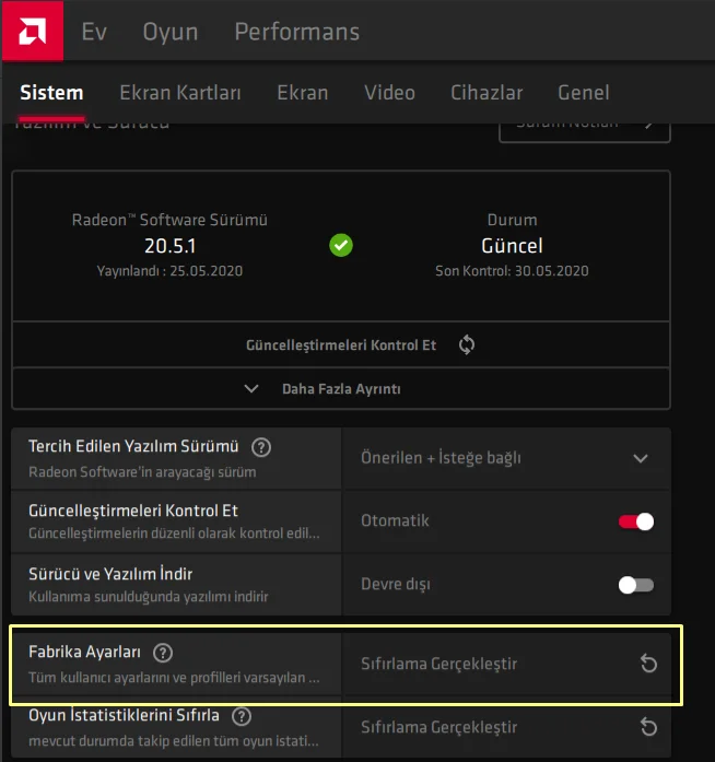 Arkadaşlar surunu çözdüm benim gibi sorunu çözemeyenler varsa diye cevap yazayım dedim. Çok kolaymış. AMD driverinda ayarlar>sisteme geliyoruz ve alttaki fabrika ayarlarına sıfırlıyorsunuz.