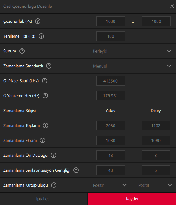 Çözünürlüğü ekleyip oyun içinden direk 1080x1080 yapınca oluyor mu ? tam ekranda yani bide öyle deneyin