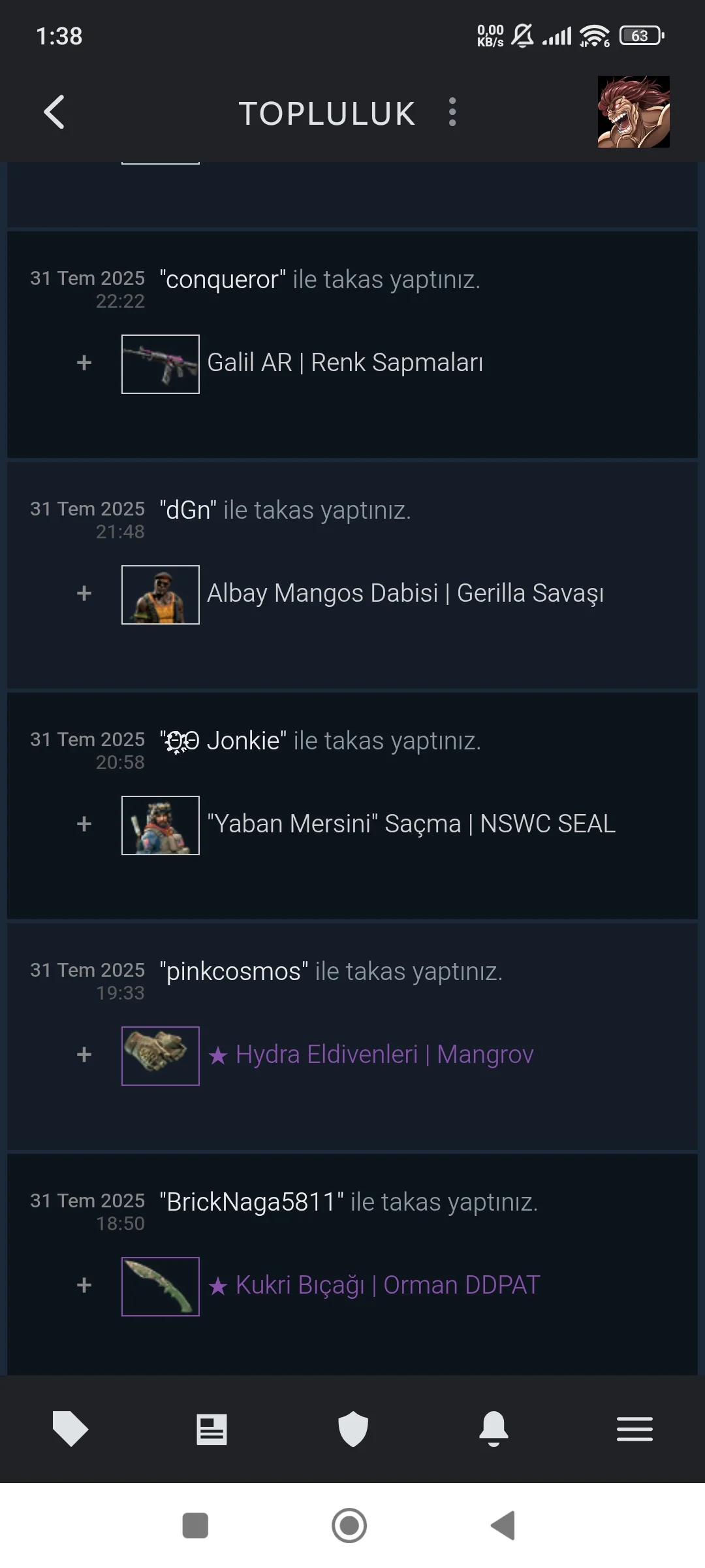 Anladım kral teşekkür ederim7 günlük takas korumadan dolayı bıraktım ben skin al sat işlerini