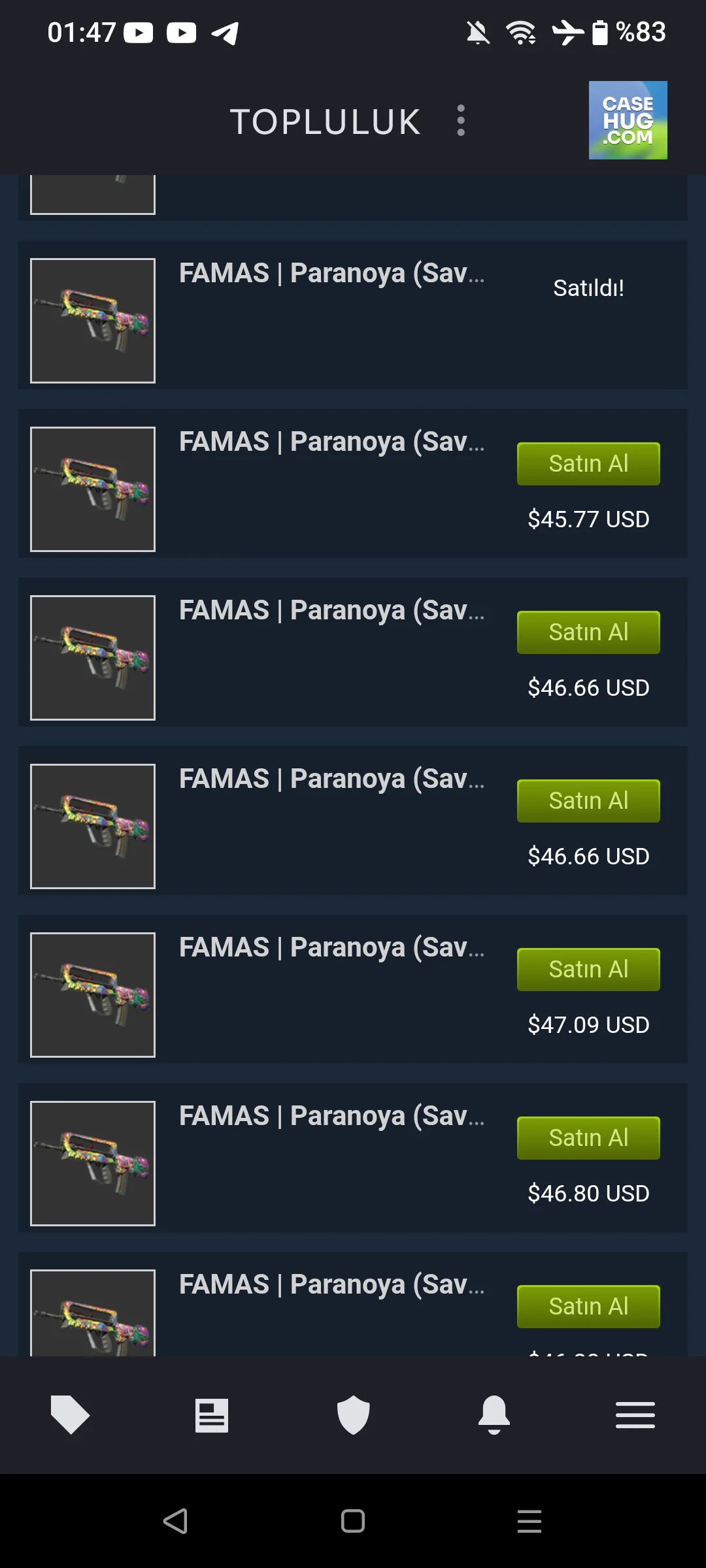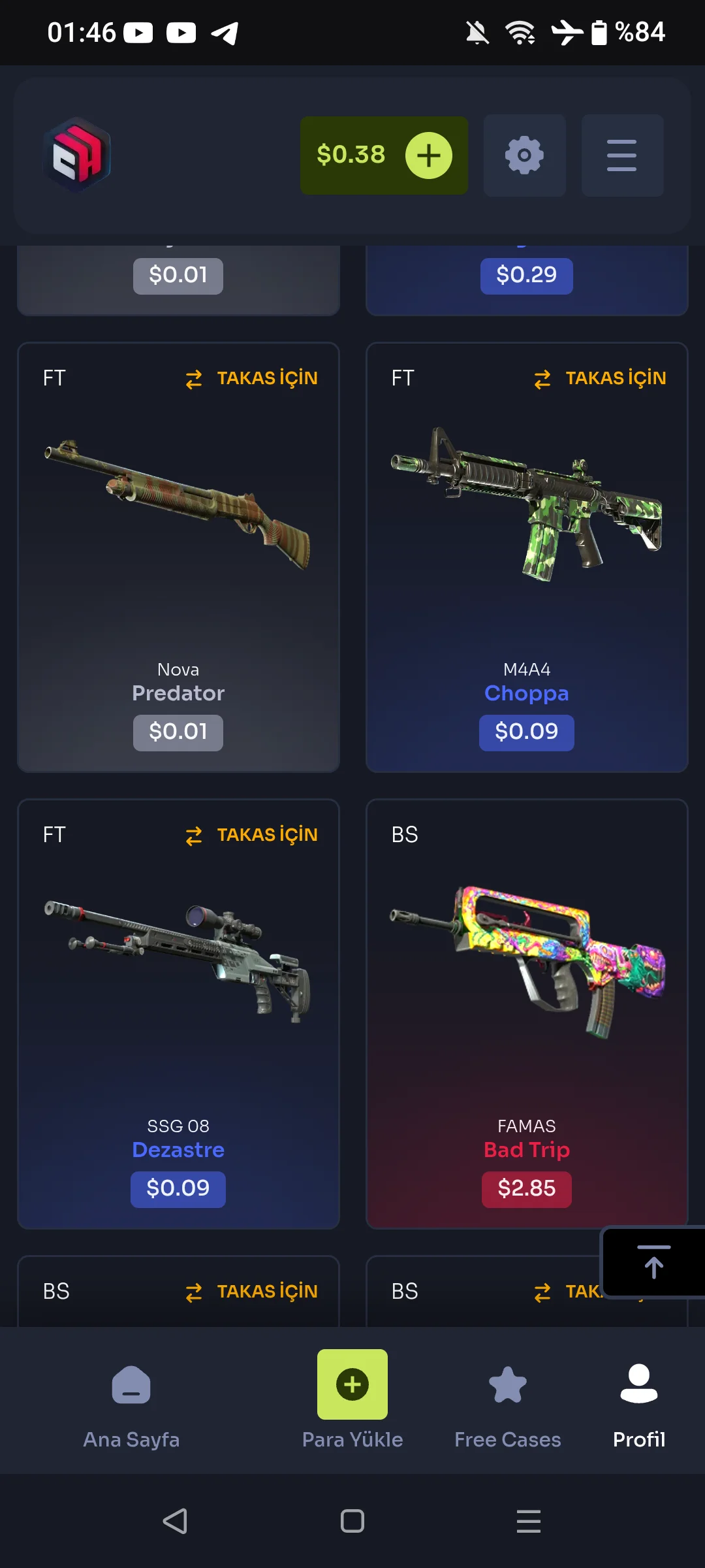 M4a4 neo noir vardi onuda 45 dolara sattım fiyatlar hala artıyor keşke satmasaydim 26 dolarlik deagle 13 dolara düşmüş laaan