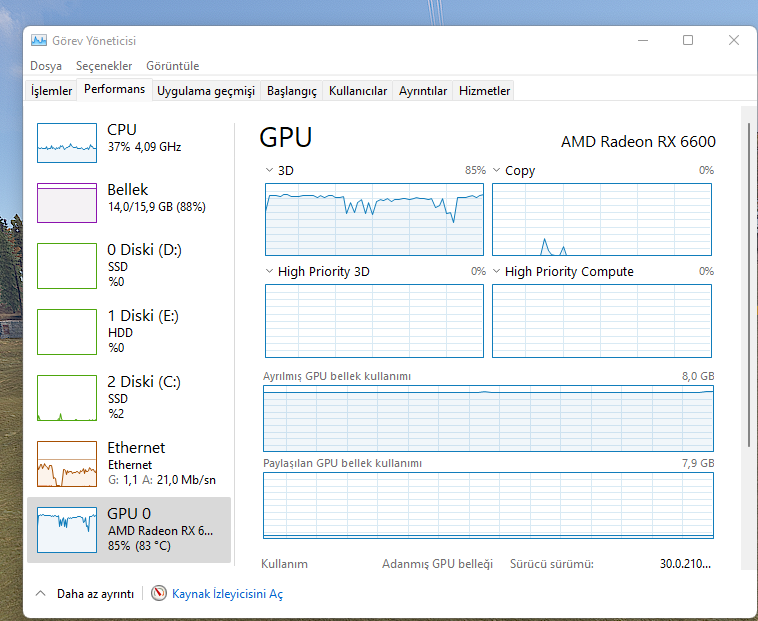 DA-M1 rx 6600 ekran kartı 83 derece