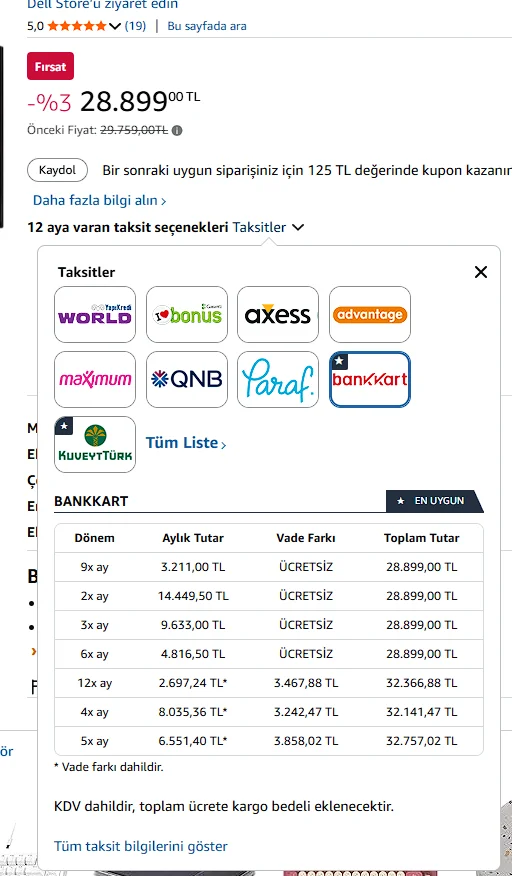 Amazon'dan 9 taksıt ımkanıyla Amazon.com.tr