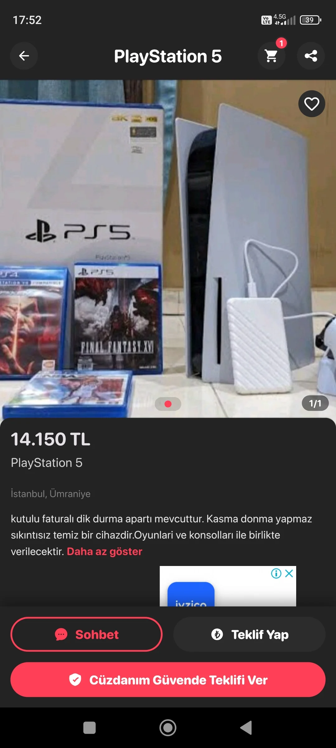Kullanıcı, Letgo platformu üzerinde piyasa değerinin oldukça altında bir fiyatla satışa sunulan bir dizüstü bilgisayar (laptop) ilanı ile karşılaşır. İlan görsellerinde ürünün kendisi, faturası ve garanti belgesi gibi belgeler net bir şekilde paylaşılmış, hatta açıklama kısmında "doktor indirimi" gibi güven artırıcı ifadeler yer almıştır. Satıcı ile iletişime geçildiğinde, oldukça nazik ve ikna edici bir üslupla yanıtlar verilir.