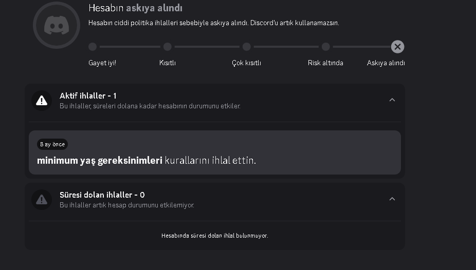 18 yaşımı doldurdum ama discord beni 8 yaşında sanıyormuş sebebi nedir acaba açma imkanı olmuyor mu neye göre karar veriyolar buna sadece arkadaşlarımla konuşmak için kullanıyorum hesabı herhangi bir sunucuya girmedim sırf merakımdan konu açıyorum geri açılma şansı var mı çok saçma