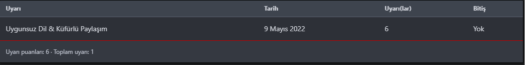 Herneyse 6 uyarı Puanı cezası Aldım ve Yanlış Hatırlamıyorsam Uyarı Puanım 20 Yi gecerse ' hafta Uzaklaştırma Alacağım Yazıyordu Uyarıyı Aldıktan 5 dakika sonra "bum" 2 hafta uzaklaştırıldım Böyle Kaliteli Bir Forumda Canlı Desteğin Olmaması Beni Üzdü İtiraz Edemedim Alttada Uyarılar Kısmını attım
