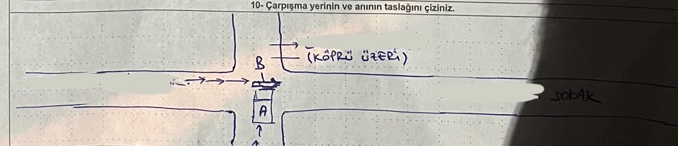 İyi akşamlar değerli forum üyeleri az önce talihsiz bir kaza yaşadık allahtan cana bir sıkıntı gelmedi. Kaza mahalle arası dört yolda hiç bir yönde yavaşlama ve durma ikazına dair bir tabela yok. A aracı benim B aracı motorlu sürücü, ikimizde kavşağa aynı anda girdik. Ben B yi gördüğüm anda frene bastım ancak araç durmasına rağmen B motoruna çarptı B önden sürttüp geçti ve ileride yere düştü. Fotoğraf ekte bu tür kaza başına gelen veya biligili varsa suçlu çıkan taraf kim oluyor fikir verirse sevinirim.
