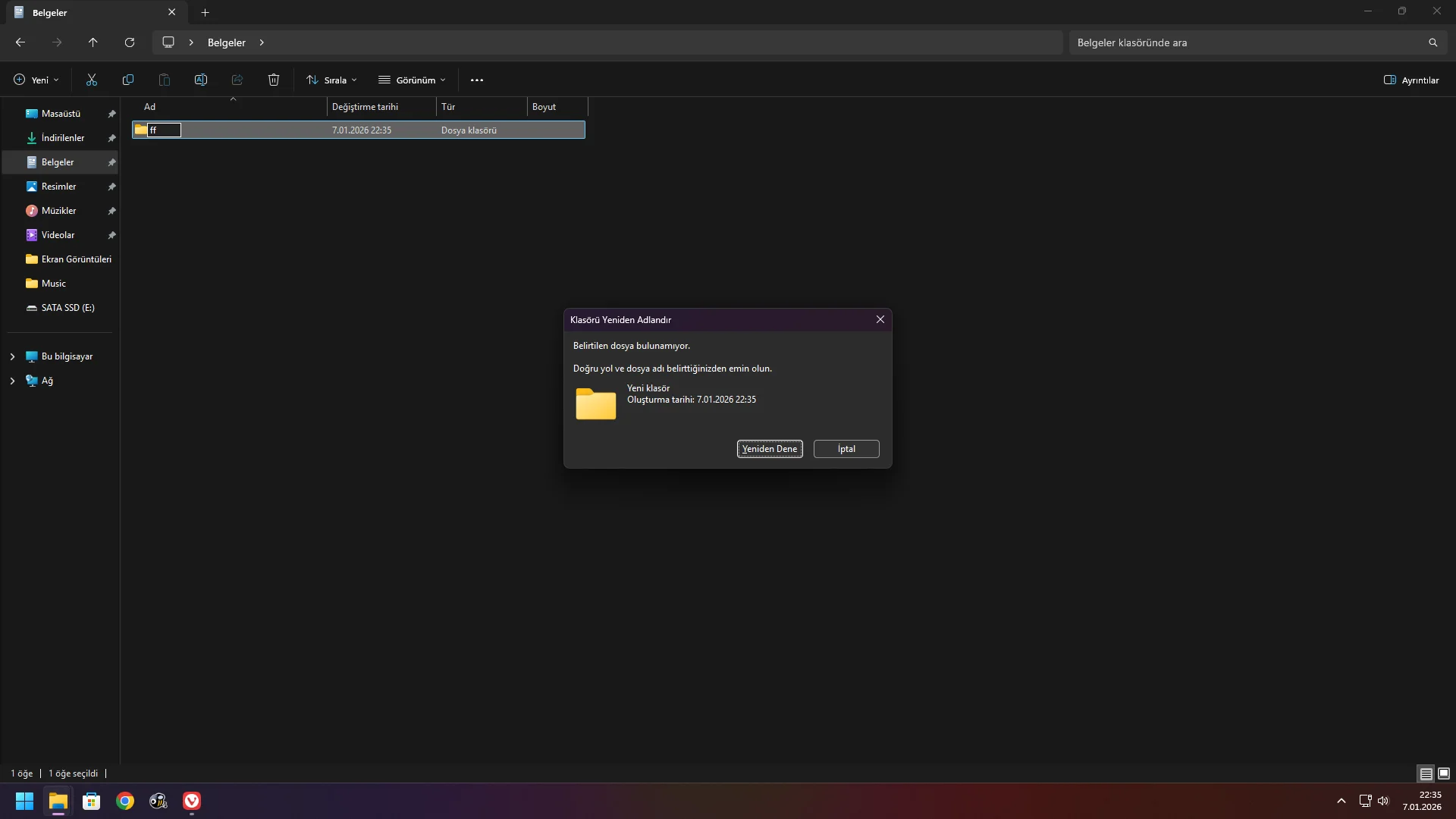 Arkadaşlar dosya oluşturup adını değiştirmeye çalışınca böyle bir hata alıyorum nedir bu virüs kaynaklı falan mı ilk defa böyle bir sorun gördüm