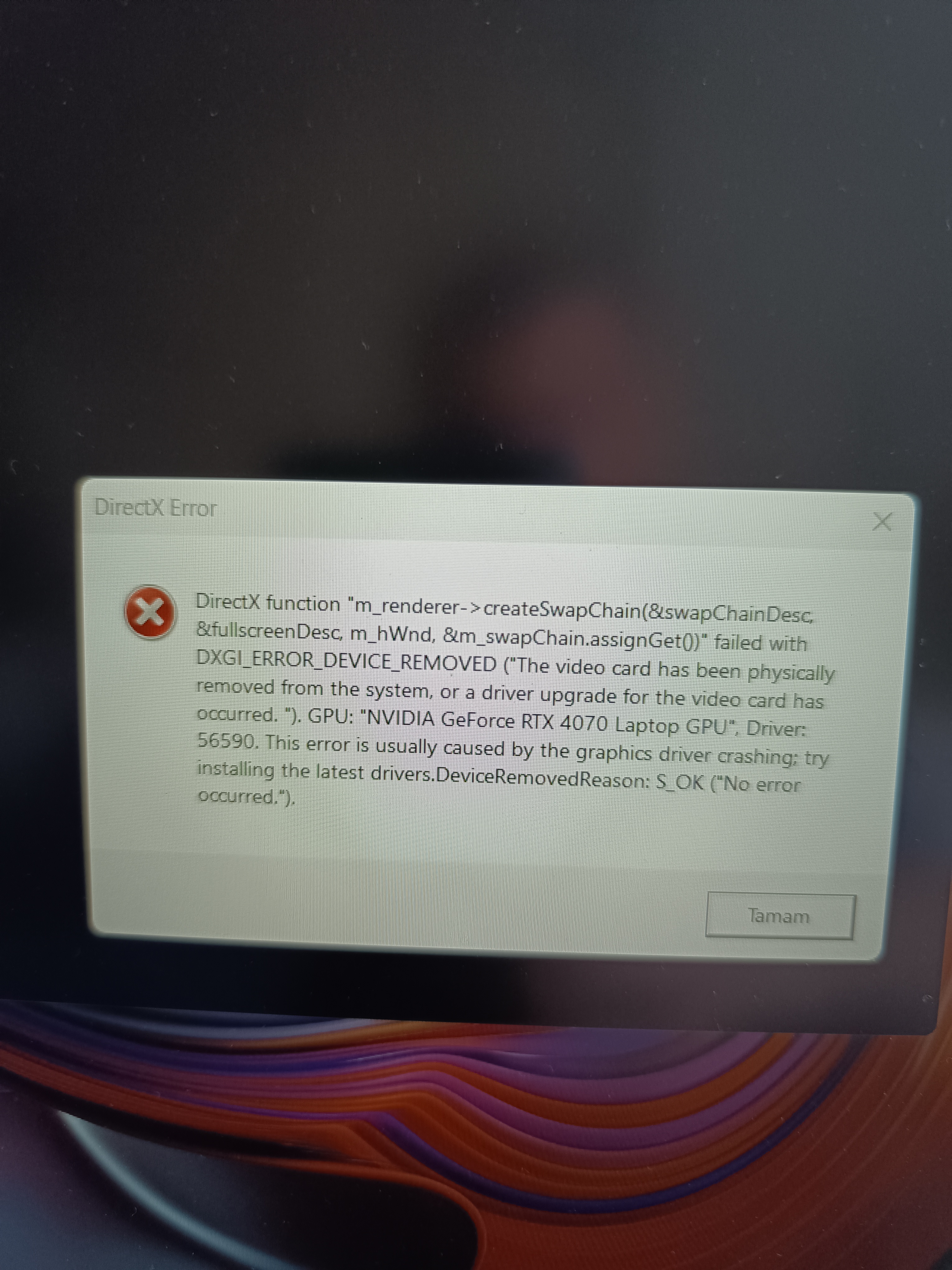 Laptop daha 1 haftalık ve oyun açmaya çalışırken şu hatayı alıyorum.
